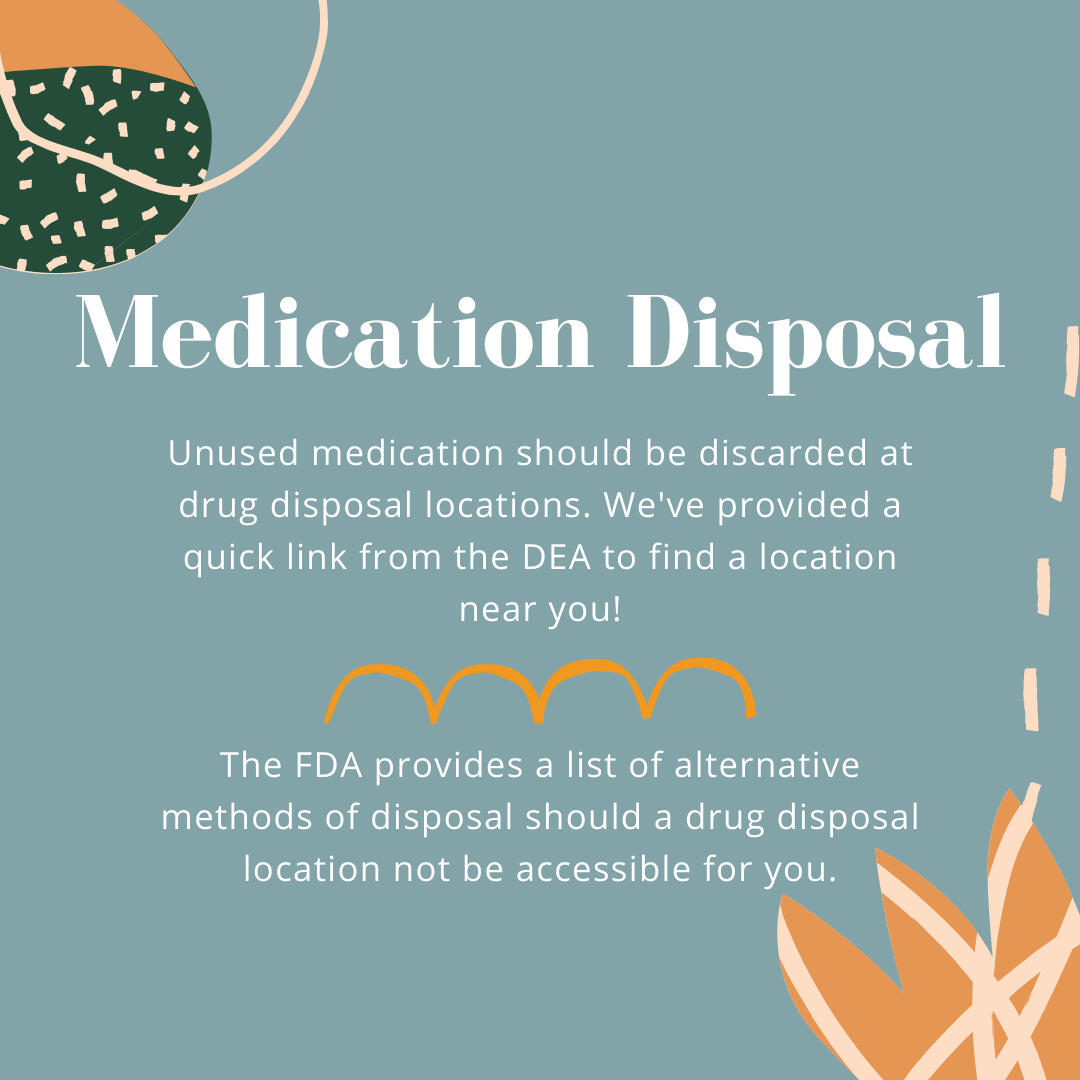 Proper medication disposal is a step that can be overlooked, but is still vital to safe utilization of medications. The best option is to find a drug disposal location, which may be found in community or clinic pharmacies and/or law enforcement facilities.